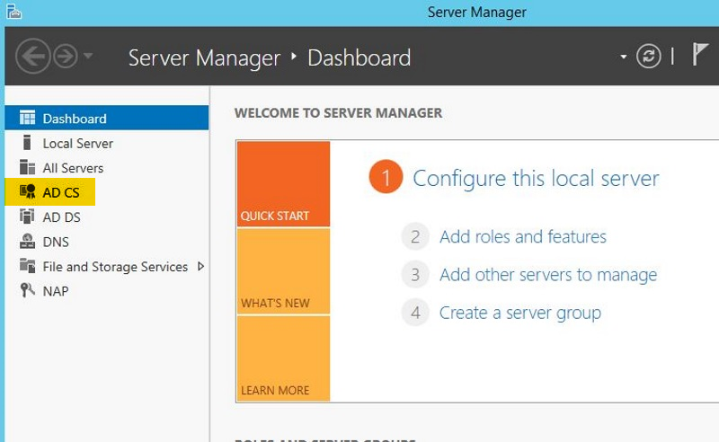 Active Directory Certificate Services (AD CS) must be installed in your Windows Server 2012.